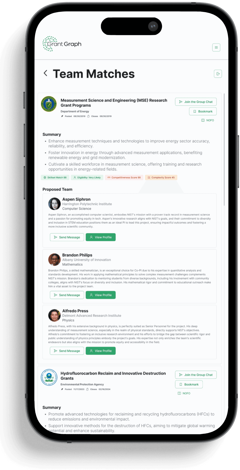 GrantGraph automatically scans your faculty pages, indexing information about the researchers at your institute. It intelligently organizes your entire research staff into a categorized dashboard.The Smartest Grant Search You've Ever Seen